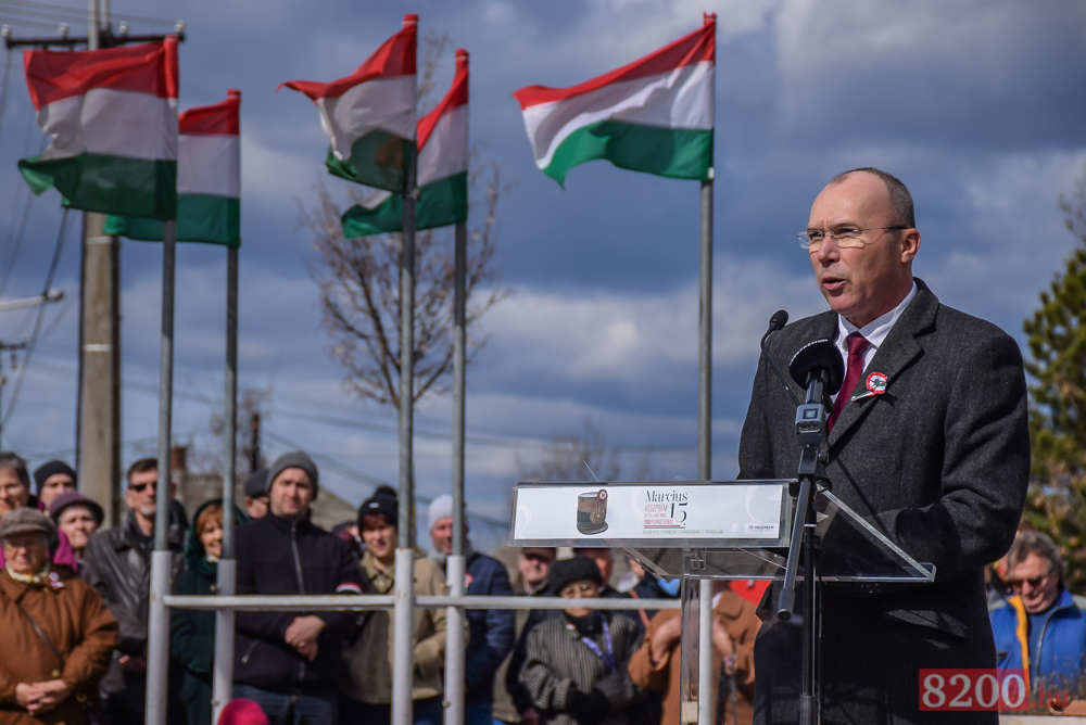 Porga Gyula emlékeztetett, 1848. március 15-én forradalmi vihar tört végig Pest, majd Buda utcáin. A viharfelhők azonban már hosszú ideje gyülekeztek a Habsburg elnyomás alatt nyögő Magyarország egén. A reformkor szabadságra szomjazó évtizedeit a forradalom napjainak tisztító vihara követtek, melyre régen vágyott a magyarság más elnyomott európai népekhez hasonlóan. – Tisztelet az ismert és ismeretlen reformereknek, tisztelet a forradalmároknak, tisztelet minden hazafinak, aki a 19. század változásainak közepette nemzetünk szabadságának és függetlenségének ügyén őrködött – hangoztatta.
