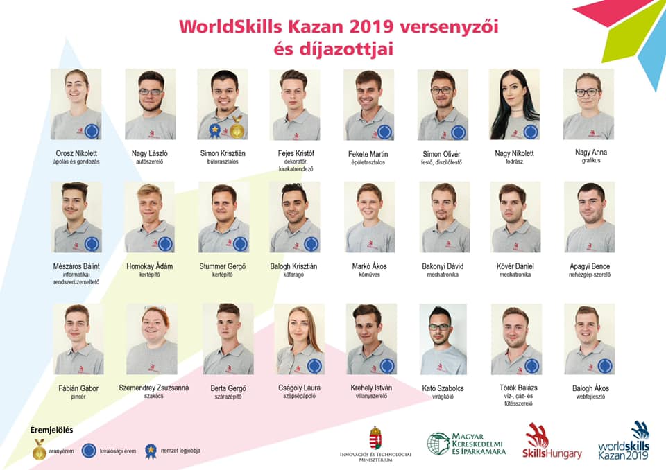 Augusztus 23-26. között 63 országból, régióból 1354 fiatal szakember versenyzett 56 szakmában a Kazany Expón kialakított helyszíneken, a magyar csapat 22 szakmában 24 versenyzőt indított.