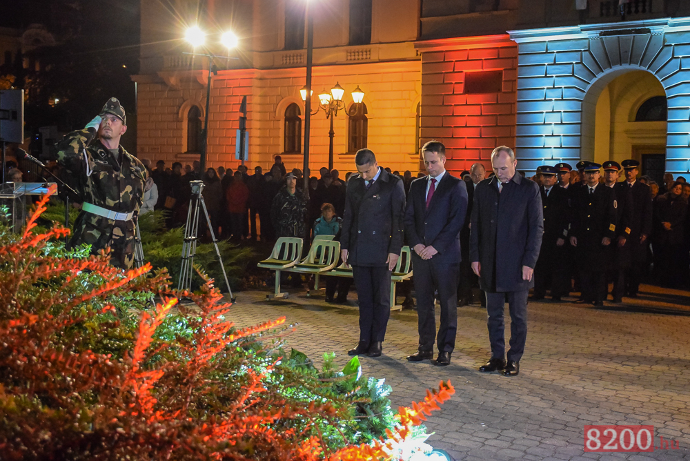 Az 1956-os forradalom és szabadságharc 62. évfordulója alkalmából rendeztek megemlékezést és koszorúzást a Megyeháza téren Brusznyai Árpád emlékműjénél kedd este.