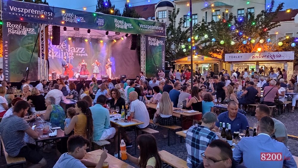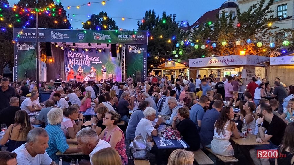 A nyári forróság enyhülésével egyre többen jelentek meg az Óváros téren a Rozé, Rizling és Jazz napok pénteki nyitónapján.