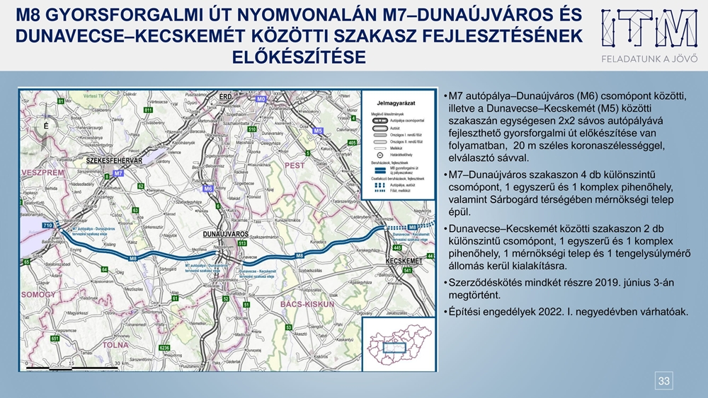 - M8 építése Balatonvilágos-Kecskemét között (építési engedély 2022-ben);