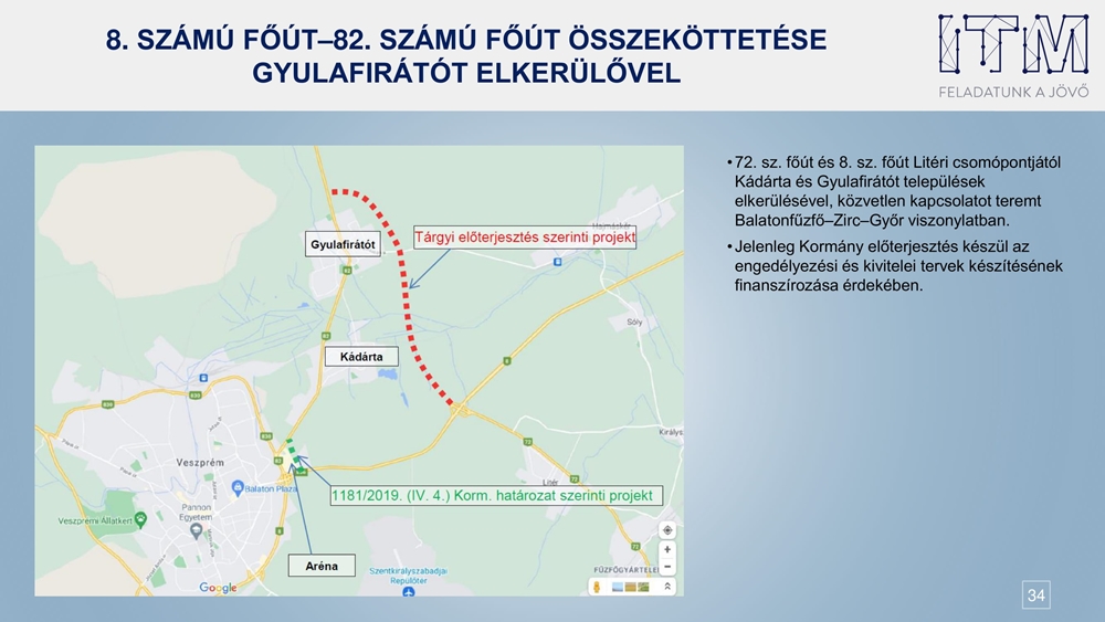 - 72-es főút fejlesztése: Litér-Balatonvilágos összekötésével;