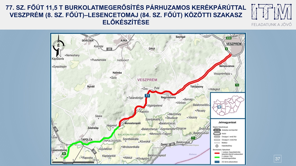 - 77-es tapolcai főút fejlesztése a 84-es számú útig, Veszprémtől Nagyvazsonyig 2x2 sávval (2022-ben tervezési tender kiírása).
