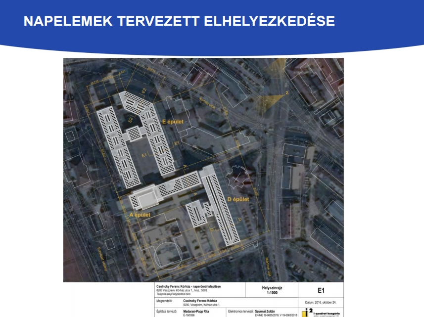 A kórház székhelyén az „A”, „D” és „E” épületek tetején helyezik el a napelem táblákat, melyek a nap sugárzását alakítják át közvetlenül villamos energiává, amit az intézmény helyben, saját felhasználására fordítja, csökkentve ezáltal a korszerű orvosi eszközök emelkedő energia költségét is. Optimális működése esetén évente több mint 11 millió forint értékű villamos áramot tudnak majd előállítani - hangzott el a projektindító sajtótájékoztatón péntek délelőtt.