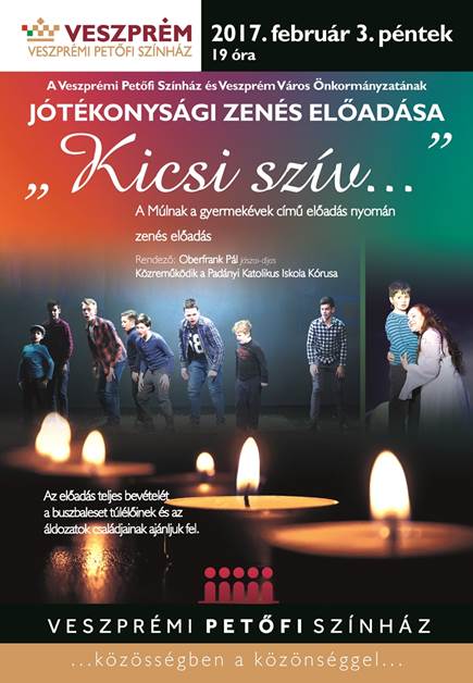 A „ Kicsi szív…” című zenés előadás február 3-án, pénteken este 7 órakor lesz látható a Veszprémi Petőfi Színház színpadán. Az est a „Múlnak a gyermekévek…” című darab nyomán született, kiegészülve prózai elemekkel.