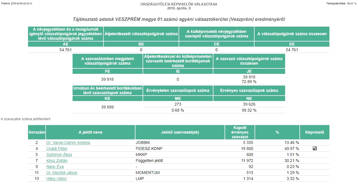 Frissítve, megérkeztek a hivatalos eredmények. A feldolgozottság még nem 100 százalékos.
