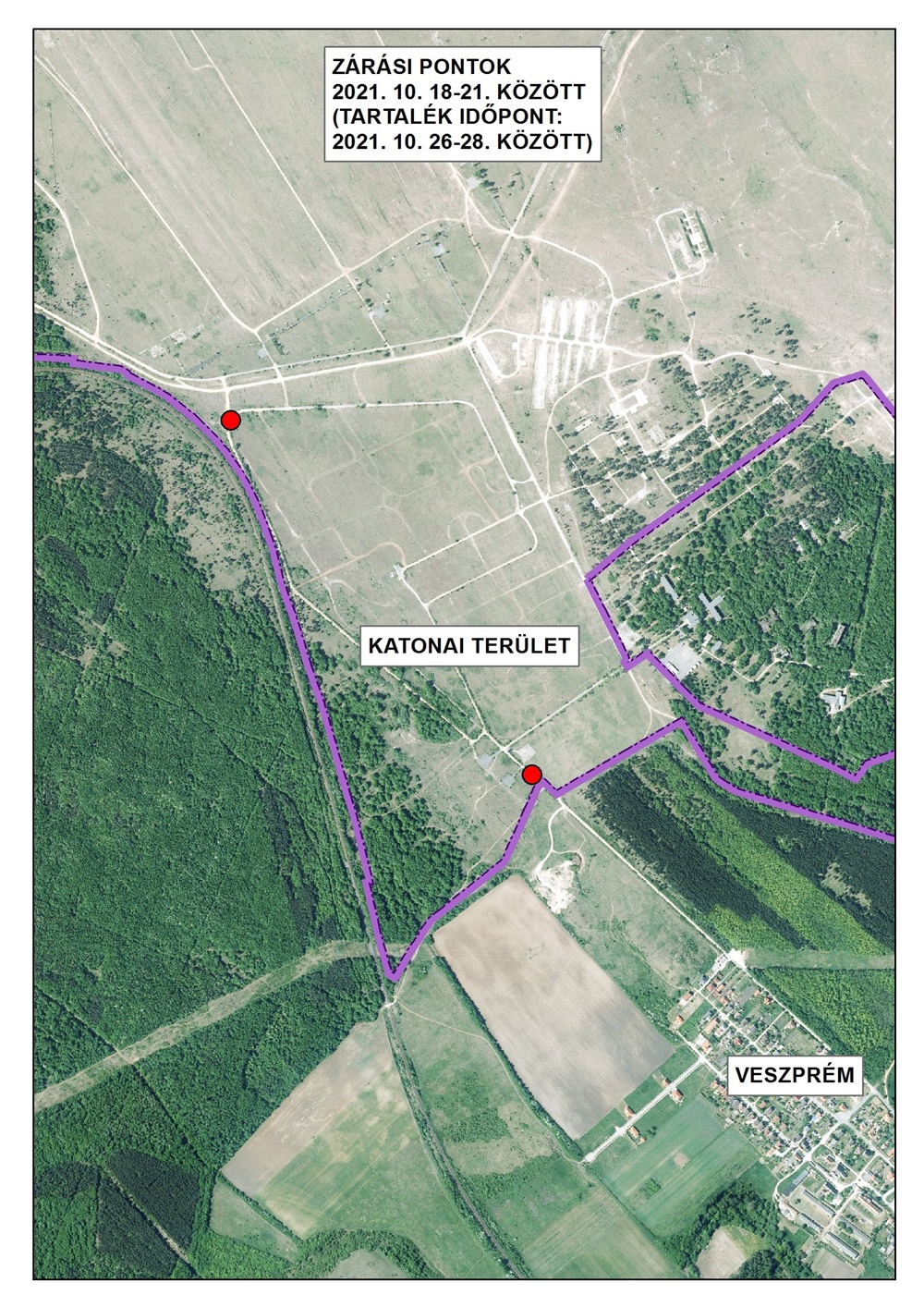 A Kisréti úton a ,,Honvédségi Terület" tábla vonalában és ugyancsak honvédségi területen a N47.1382 E17.8841 koordinátán telepített őrhelyen.