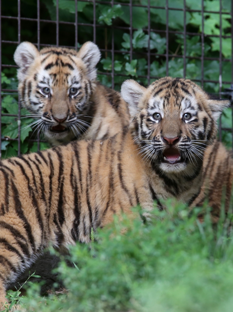 Megkezdődött a kistigrisek kiszoktatása a külső bemutatóhelyükre a Veszprémi Állatkertben.