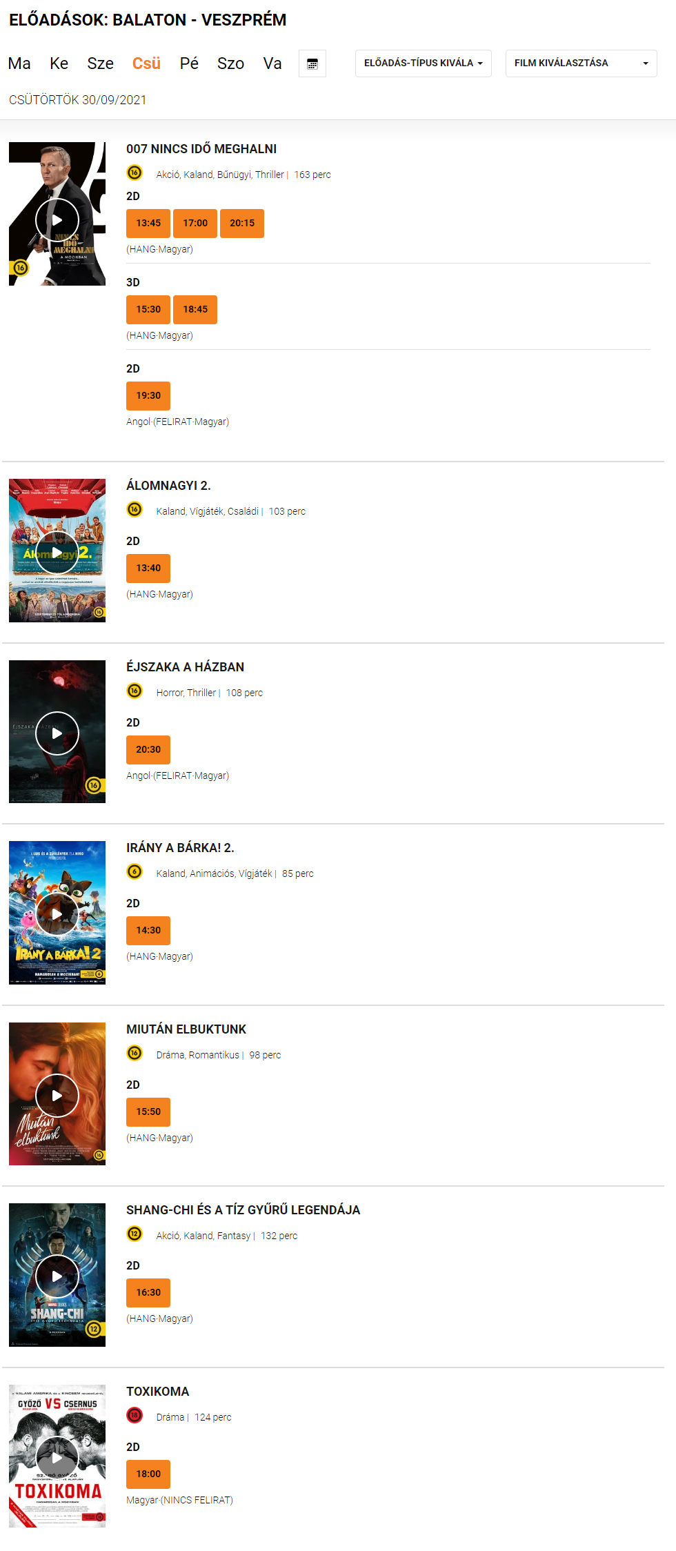 A Cinema City tiszteletjegy beváltható bármely Cinema City moziban hétfőtől vasárnapig IMAX és Digitális 3D-s filmekre a premier után két héttel. Érvényes: 2021. október 7-ig.