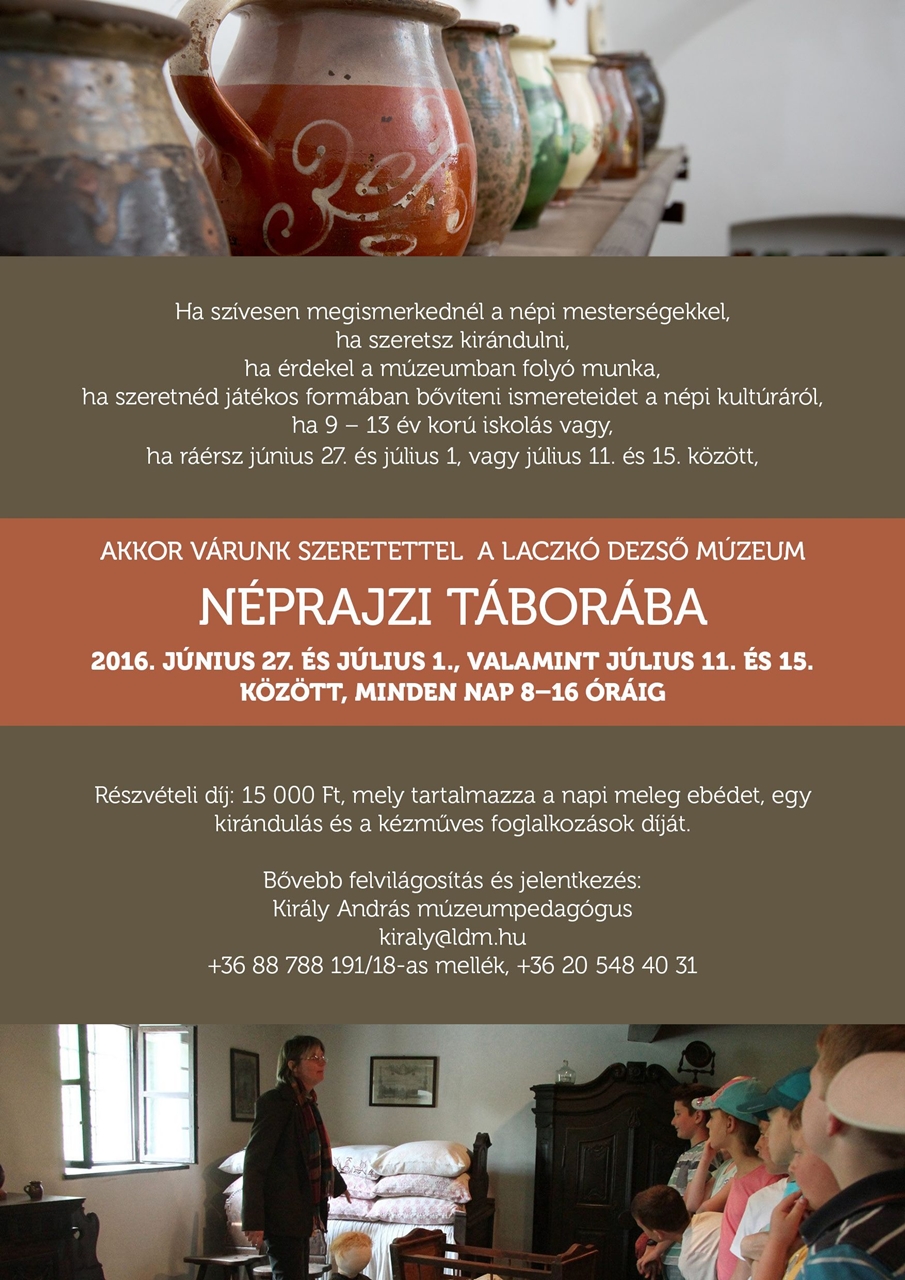 A Laczkó Dezső Múzeum Villa Romana Balácán és a Bakonyi Házban (Veszprémben) is rendez idén nyári múzeumi tábort gyermekek számára.