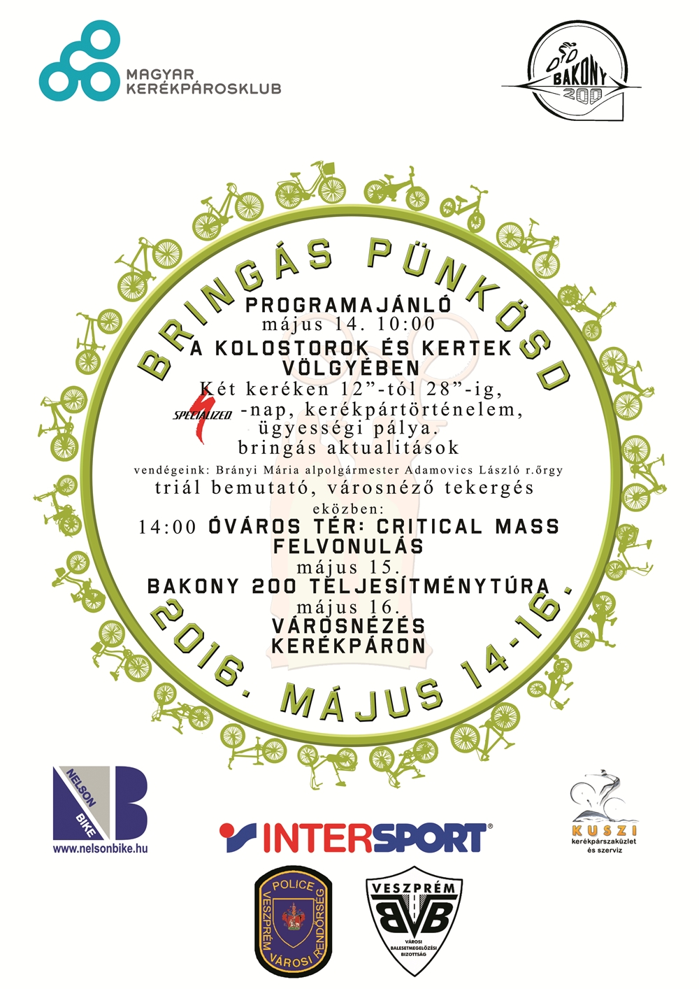 Egyebek mellett triál bemutató, bringás ügyességi pálya és városnéző tekerés várja a biciklizőket május 14-én, szombaton Veszprémben.