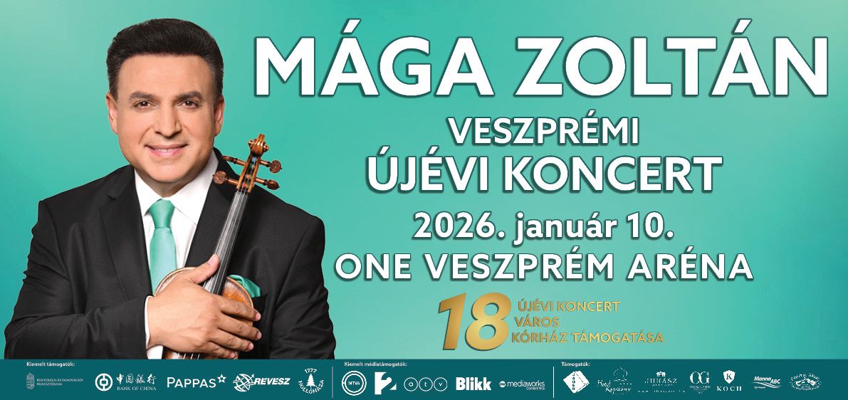 Mága Zoltán hegedűművész és produkciós csapata bejelentette, hogy a Budapesti Újévi Koncert immár 18 éves hagyománya 2026-ban új fejezetet nyit: a nagyszabású eseménysorozat első alkalommal érkezik Veszprémbe, a One Veszprém Arénába, hogy országos hagyományt teremtsen. A „Szép vagy, gyönyörű vagy, Magyarország – a hagyomány Veszprémben folytatódik!” jelmondattal megvalósuló koncert egyben jótékonysági missziót is szolgál.