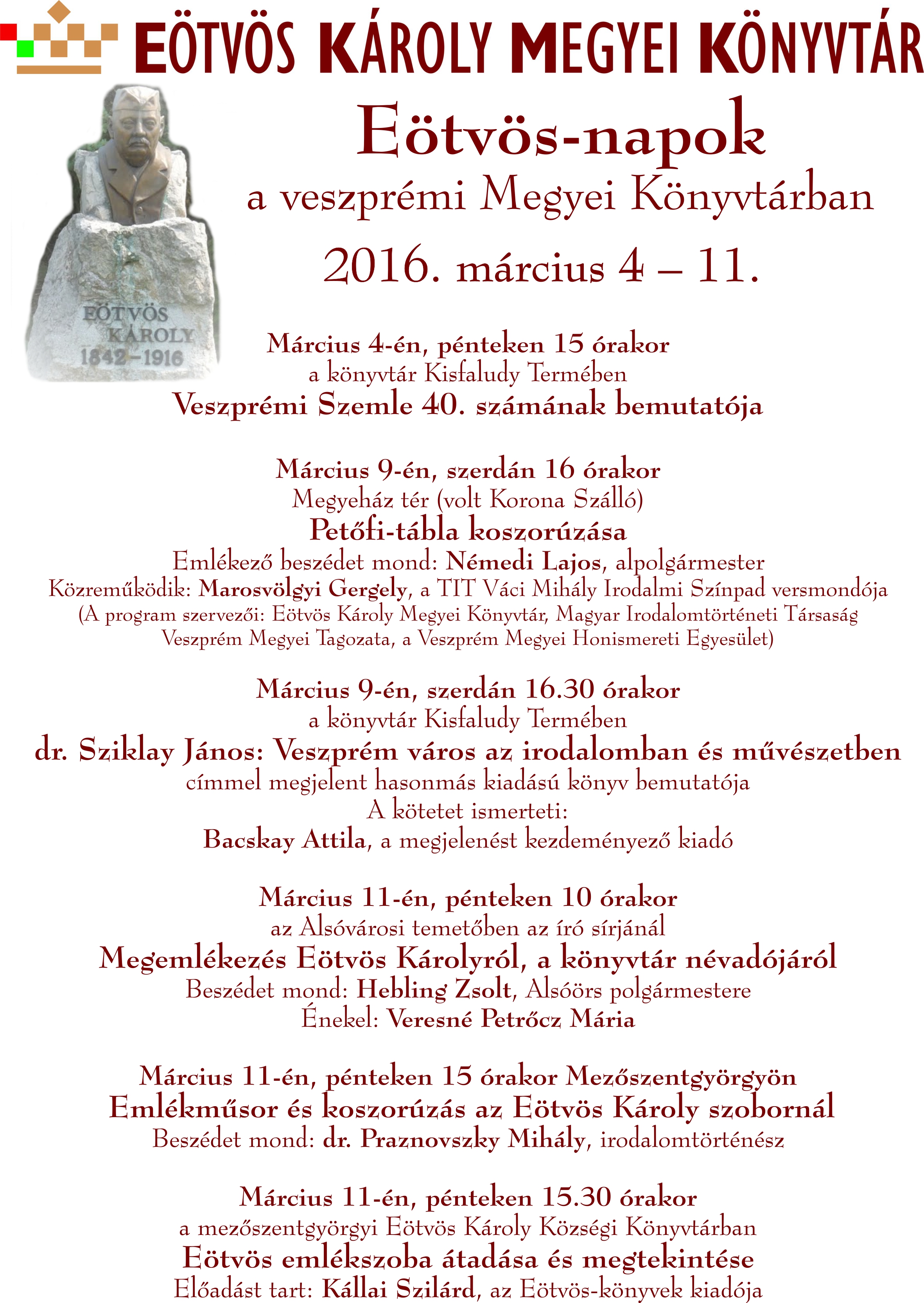 A Veszprémi Szemle 40. számának bemutatójával veszi kezdetét idén az Eötvös napok programsorozat az író halálának 100. évfordulóján.