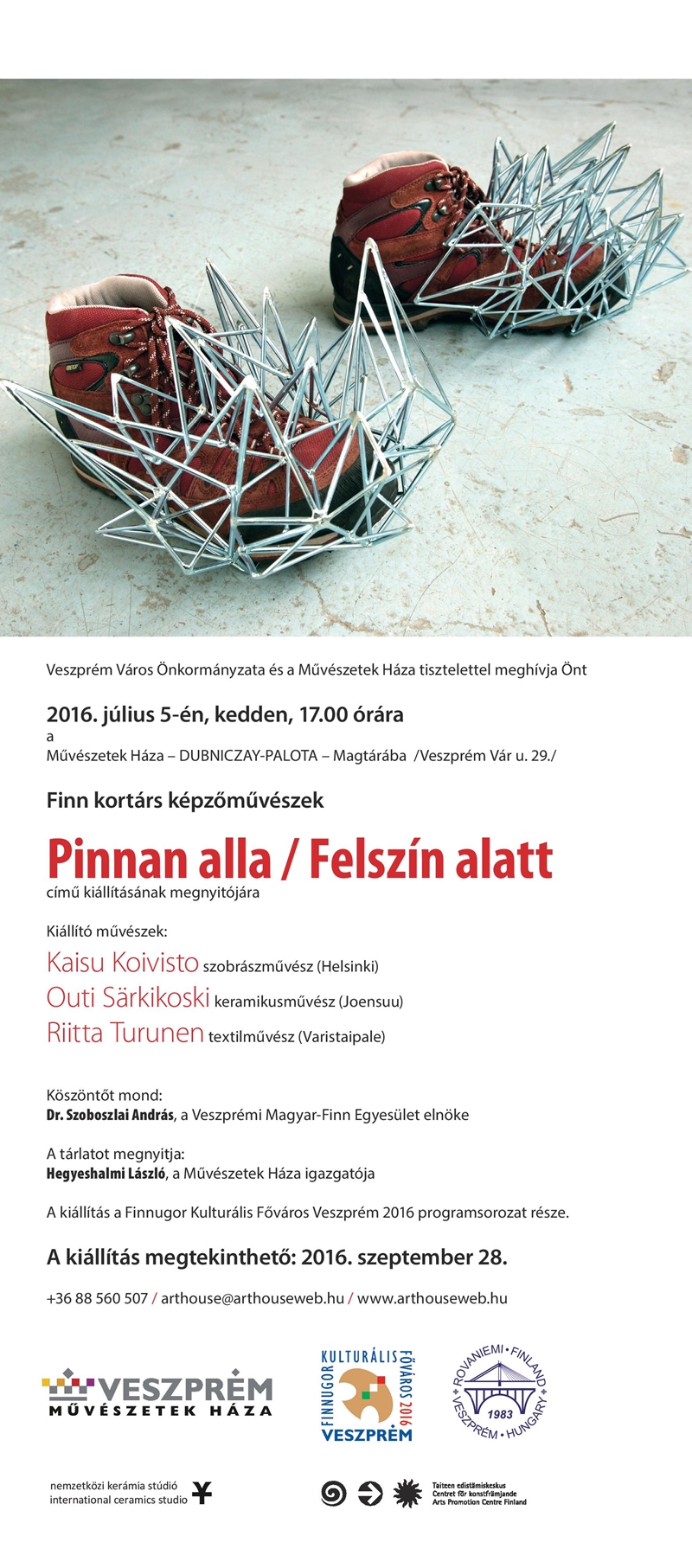 Pinnan alla / Felszín alatt című kiállítás megnyitóját július 5-én, kedden 17 órakor tarják a Művészetek Háza – DUBNICZAY-PALOTA – Magtárába.