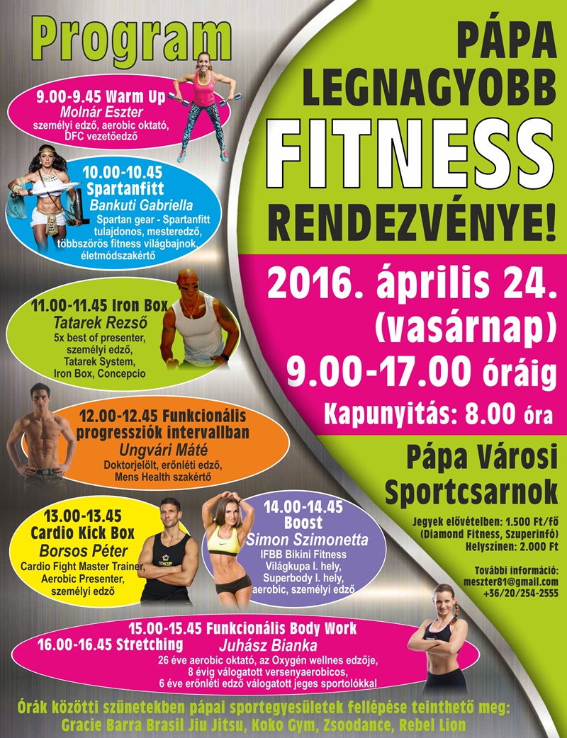 Pápa legnagyobb fitness rendezvényét tartják meg április 24-én, vasárnap a Pápa Városi Sportcsarnokban.