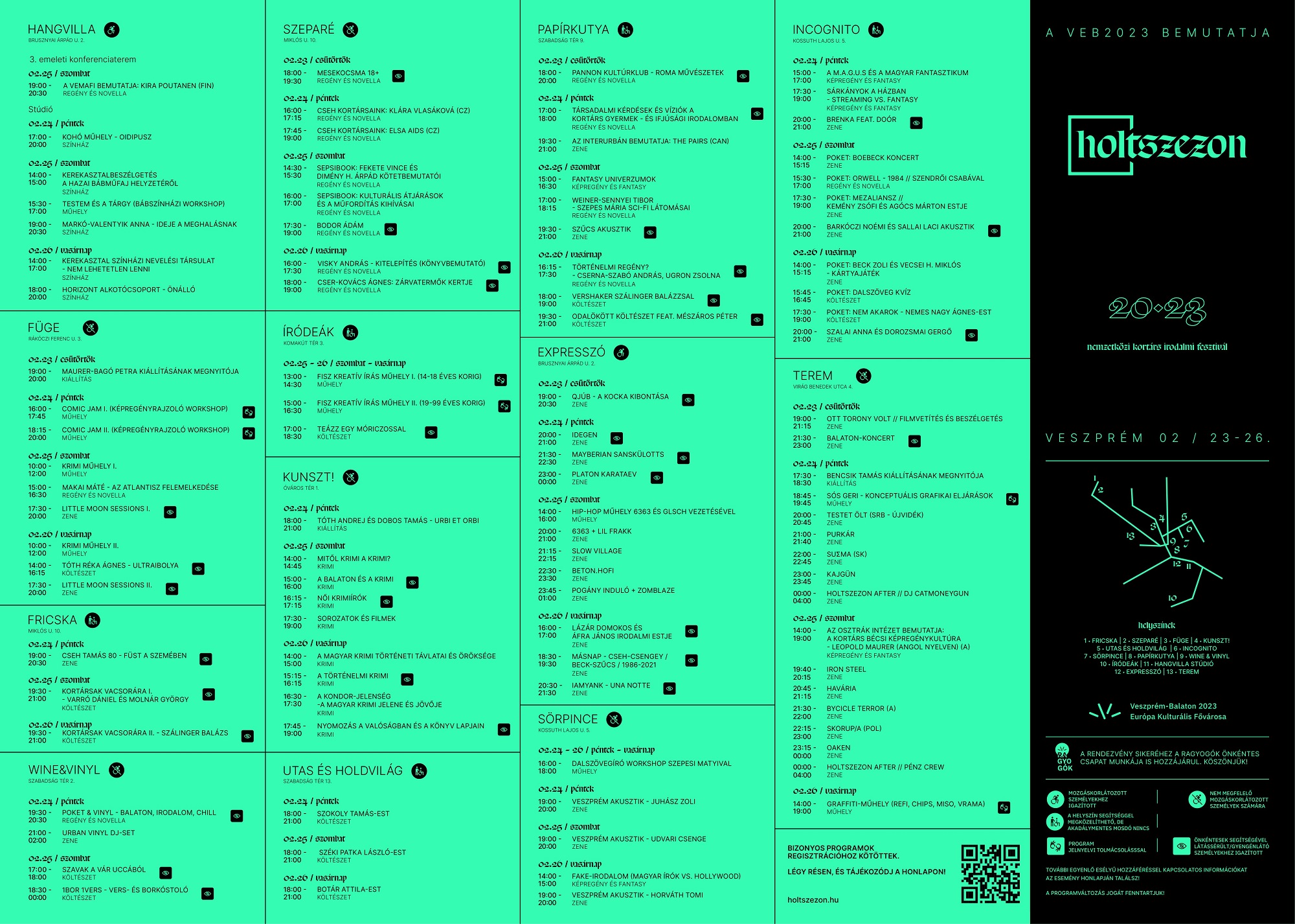 2023. február 23-26. között második alkalommal rendezik meg a Veszprém-Balaton 2023 Európa Kulturális Fővárosa program kiemelt irodalmi rendezvényét, a Holtszezon Nemzetközi Kortárs Irodalmi Fesztivált.
