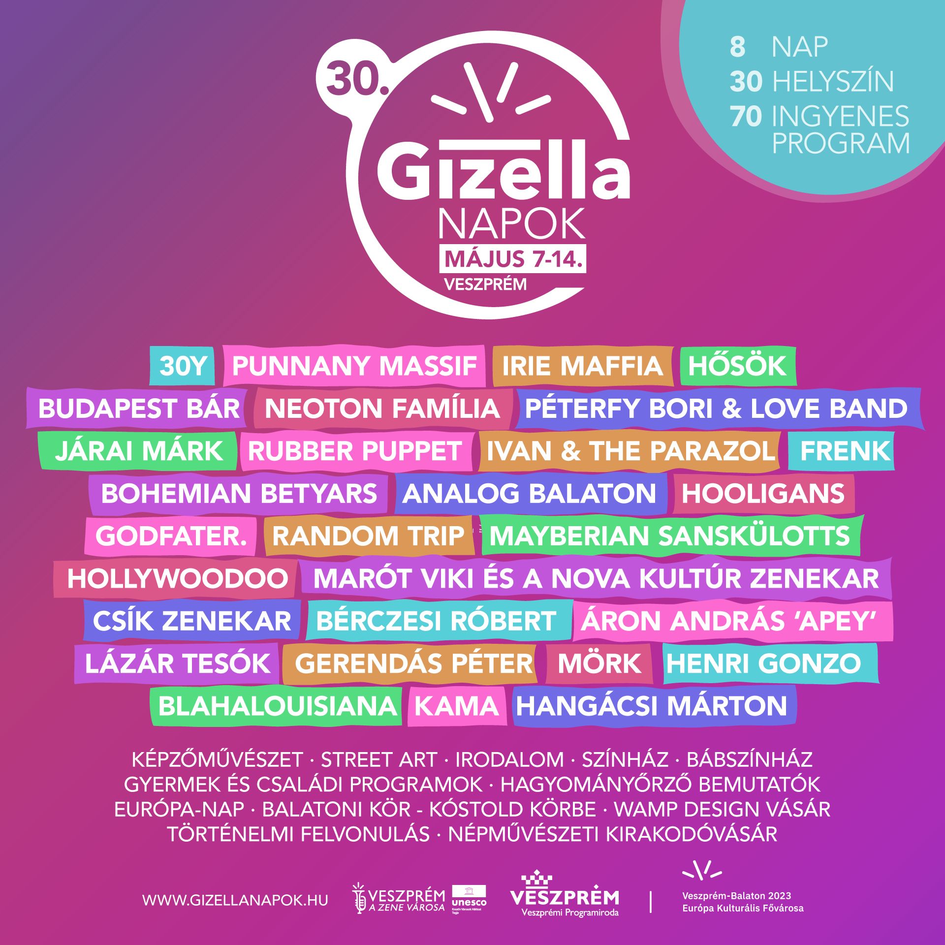 30. Gizella Napok május 7-14. között Veszprémben! Ingyenes koncertekkel, művészeti és családi programokkal vár a királynék városának legnagyobb összművészeti fesztiválja több tucat belvárosi helyszínen - írják közösségi oldalukon a szervezők.