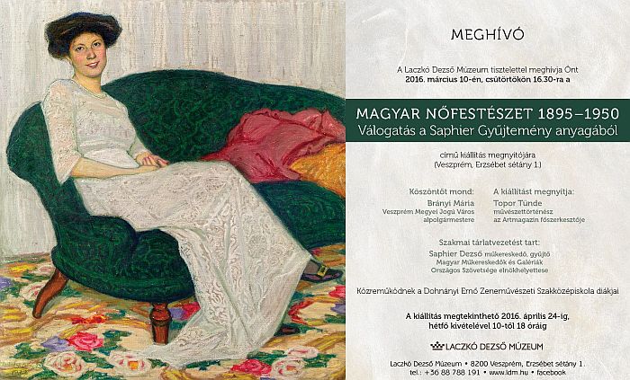 „Magyar nőfestészet 1895–1950 – Válogatás a Saphier Gyűjtemény anyagából” címmel nyílik kiállítás a Laczkó Dezső Múzeumban.