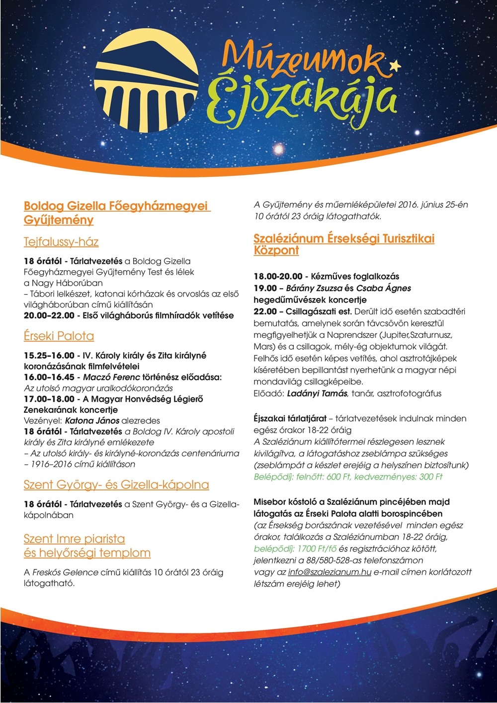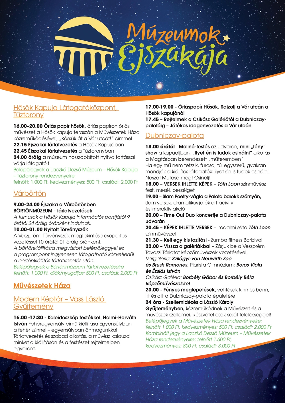 A Múzeumok Éjszakáján a felvonulás egyéb okok miatt, módosított útvonalon halad, fáklyák vételezésére pedig a Kittenberger Kálmán utcánál lesz lehetőség, ezt a múzeum munkatársai fogják koordinálni. Megértésüket köszönjük!