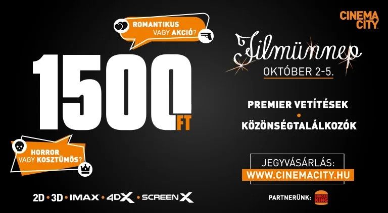 Október 2. és 5. között visszatér az ország egyik legnépszerűbb filmes eseménye, a Cinema City Filmünnep, amely négy napra a mozirajongók igazi közös „karácsonyává” változtatja a filmszínházakat. Országszerte minden Cinema City egységben kedvezményes jegyáron kínálják a mozizás legmagasabb minőségét, exkluzív bemutatókkal és közönségtalálkozókkal fűszerezve.