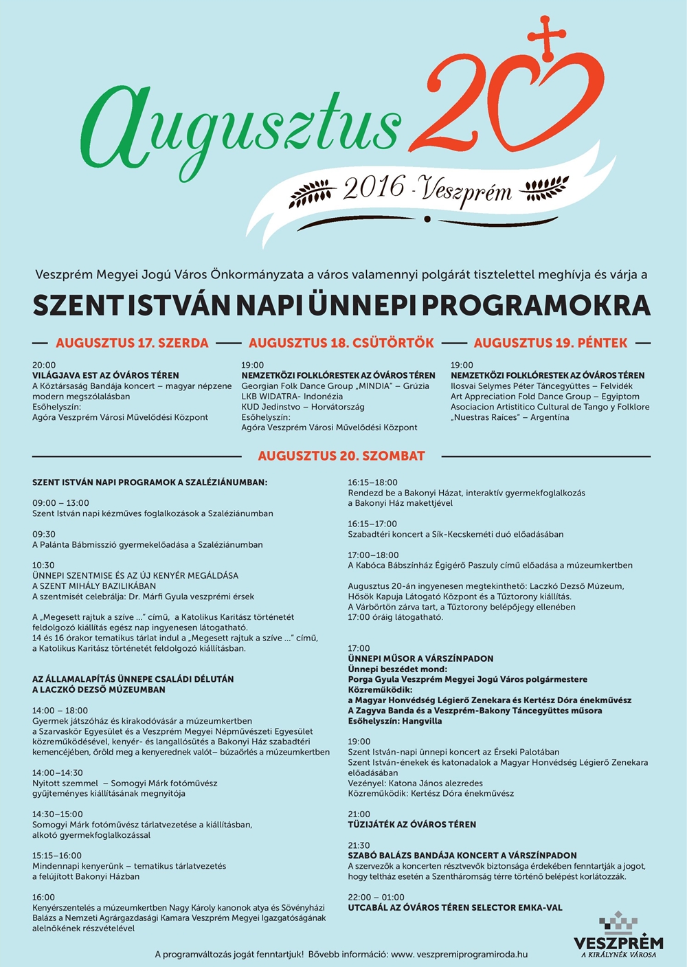 Az ünnepi programsorozat már augusztus 17-én elkezdődik.