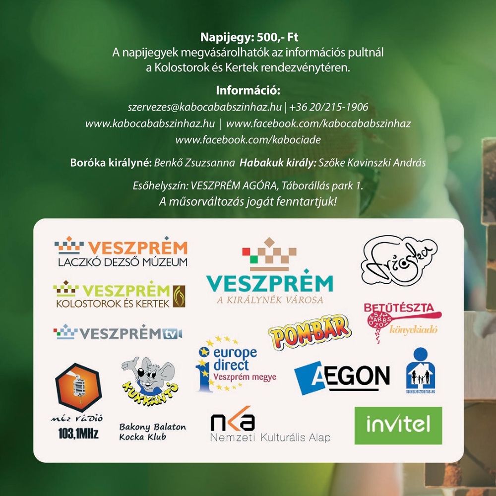 Június 11-12-én tartják meg a Kabóca Bábszínház hagyományos családi fesztiválját Veszprémben a Kolostorok és kertek rendezvényterületén.