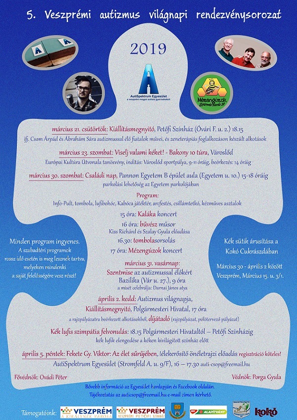 A veszprémi AutiSpektrum Egyesület idén ötödik alkalommal rendez az április 2-i autizmus világnap alkalmából rendezvénysorozatot.