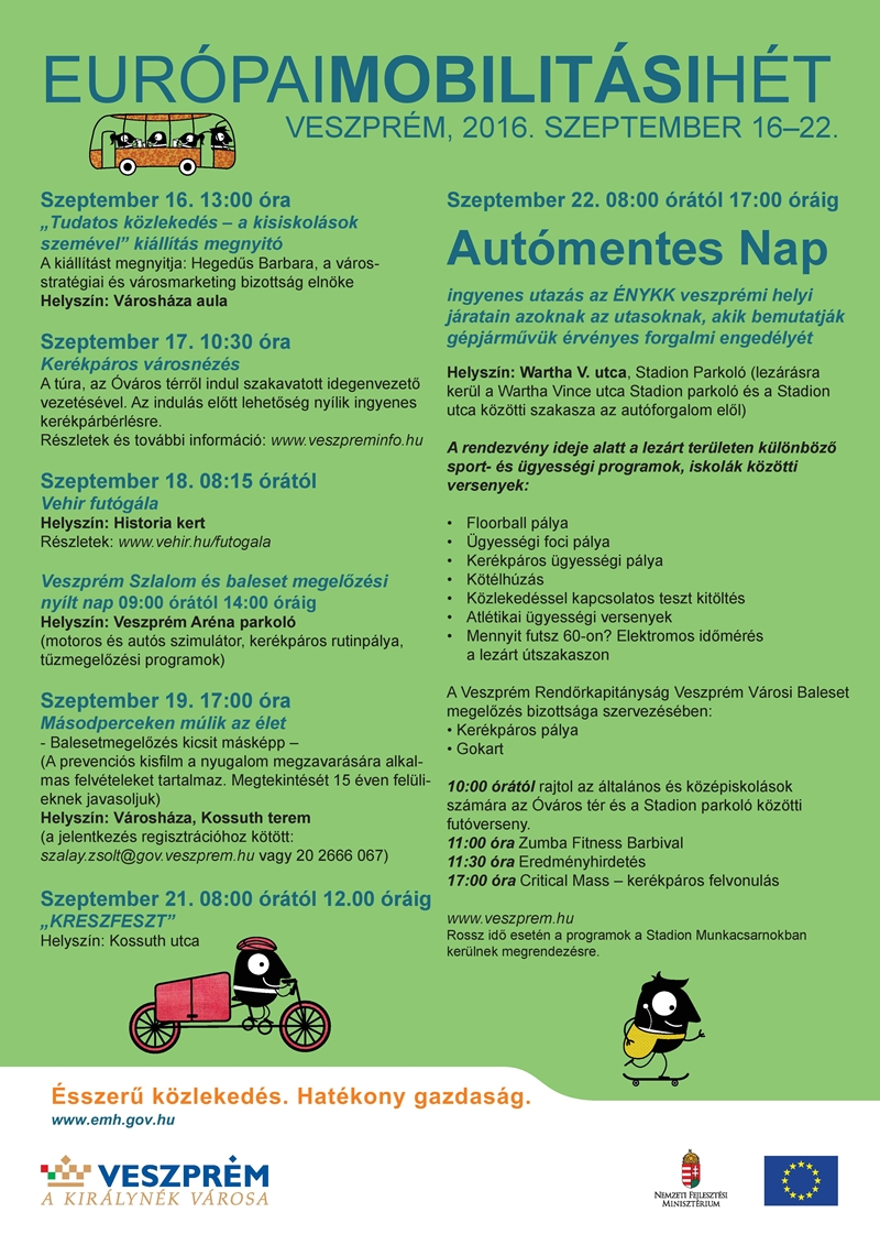 Ismét csatlakozott Veszprém az Európai Mobilitási Hét programjaihoz, amit szeptember 16. és 22. között tartanak meg.