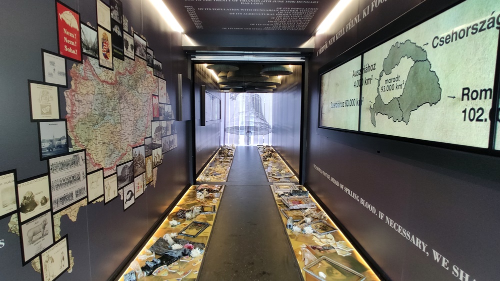 A Párizstól alig egyórányi vonatútra fekvő Nagy-Trianon kastélyban olyan szerződés aláírására kötelezték a magyarokat, amelynek értelmében az ezeréves királyság elvesztette területének kétharmadát, 92 városát, valamint út- és csatornahálózatának 80 százalékát. Összesen 3 727 205 magyar került idegen uralom alá. 1920. június 4-e után sokan úgy érezték, hogy nincs tovább, mert túl nagy a veszteség és az igazságtalanság okozta keserűség. Nem így történt. Azóta 100 év telt el és Magyarország nemcsak hogy megmaradt, de a 21. század első harmadára Közép-Európa egyik legsikeresebb országa lett - olvasható a kihelyezet információs füzetben.
