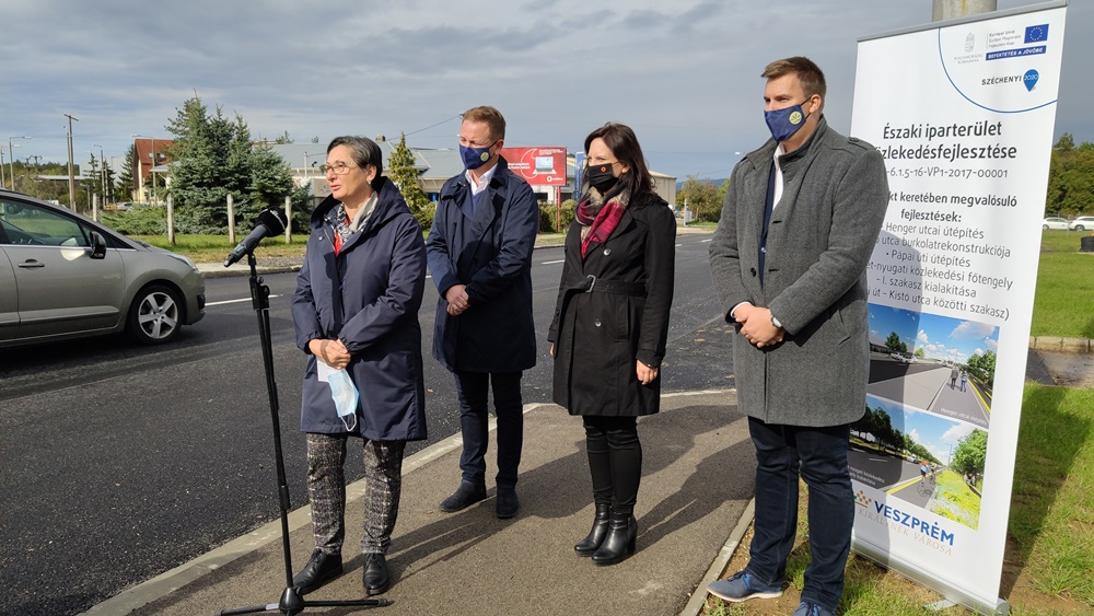 Brányi Mária alpolgármester a helyszínen kiemelte, a projekt célja, hogy jelentősen javítsák az iparterületen dolgozók munkába jutásának feltételeit. Ennek részeként tették lehetővé a Henger utca átjárhatóságát, amivel a Pápai utat és a Házgyári utat kötötték össze, elkészült a kelet-nyugati összekötő nyomvonal első üteme a Pápai út és a Kistó utca között, melynek utolsó összecsatlakozását a jövő év folyamán kivitelezik.