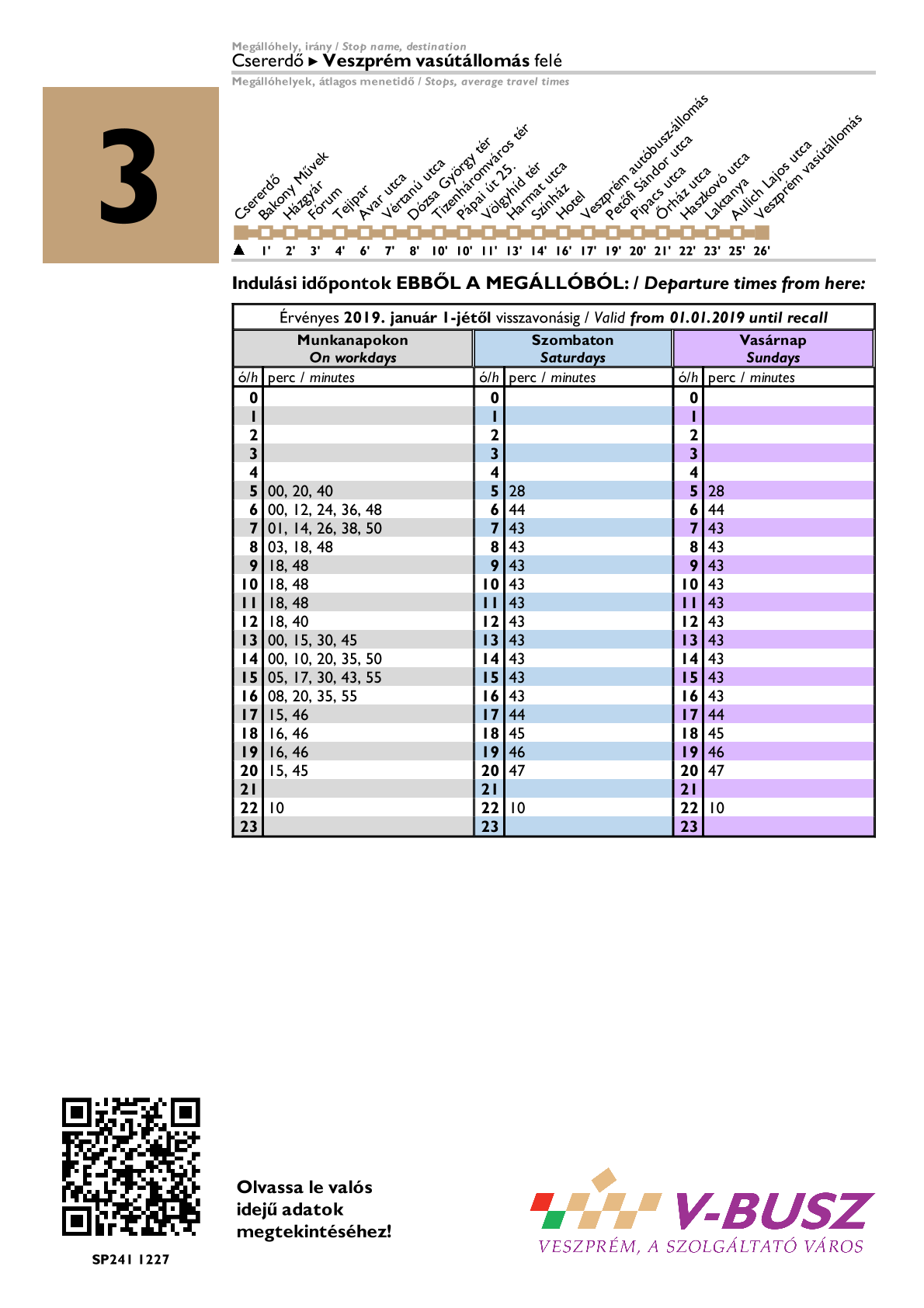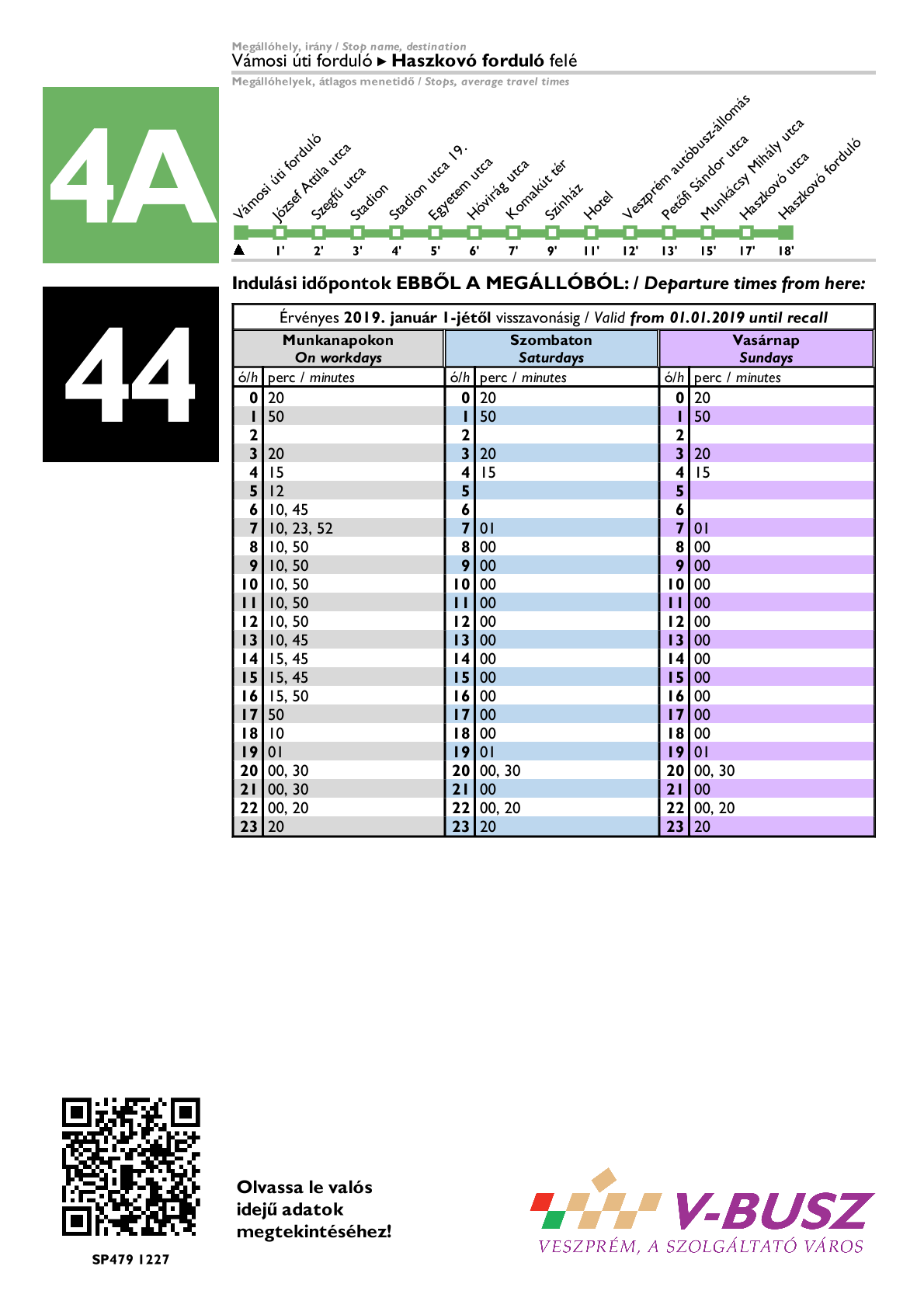 2019. január 1-től érvényes helyi járatos menetrend Veszprémben.