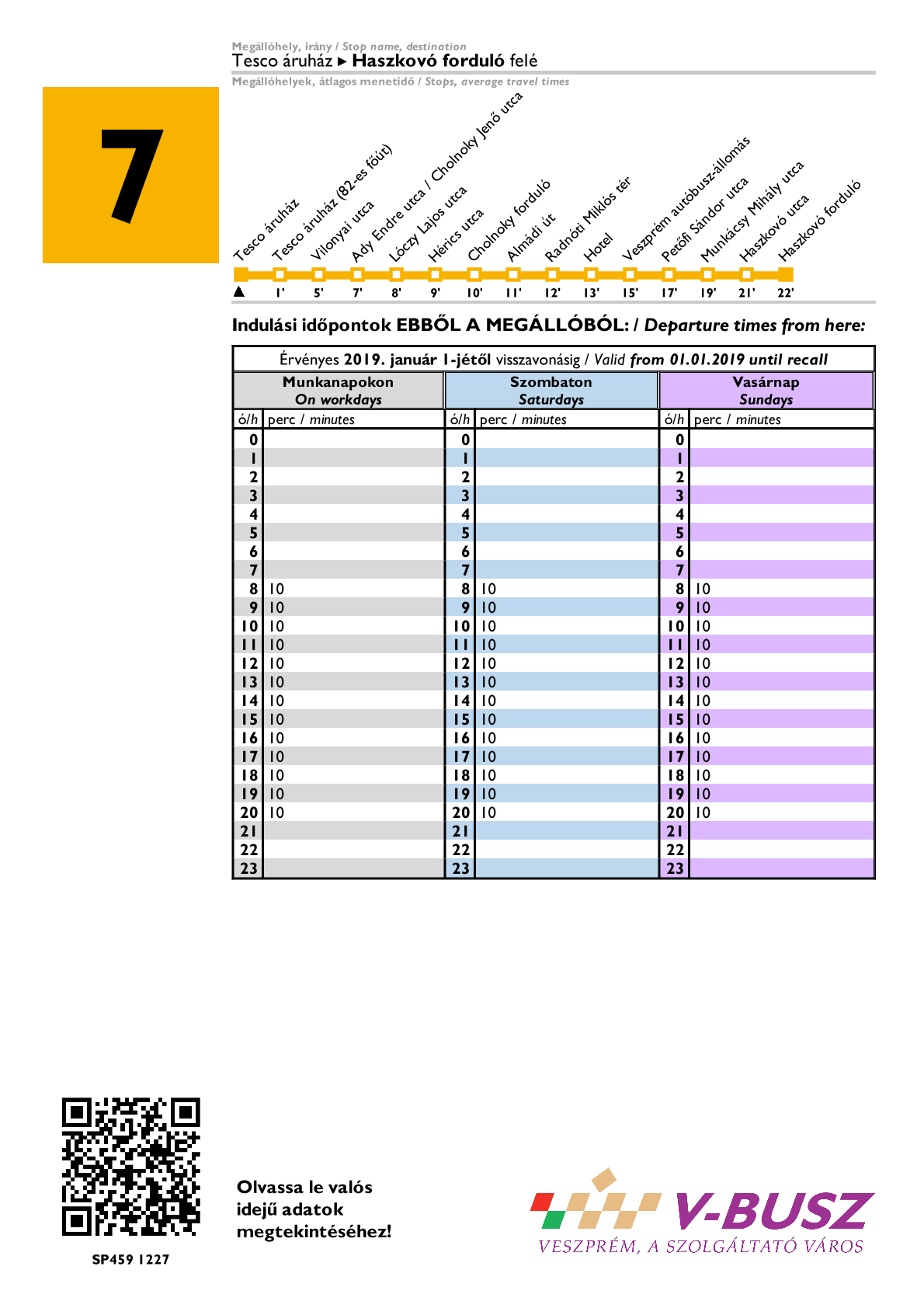 Veszprém helyi járatos menetrend 2019. január 1-től