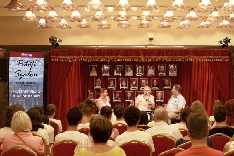 A régi idők műszaki vezetője, Perlaki Róbert és a Veszprémi Petőfi Színház műszaki vezetője, Kondrik István kalauzolta el az érdeklődő közönséget a színház műszaki világába.