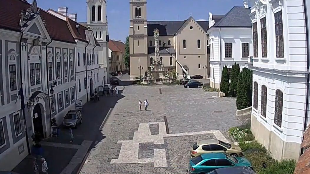 Az oldalára borult egy kosaras autó a Szentháromság téren, a megemelt kosárban ketten tartózkodtak. A balesetről felvétel is készült.