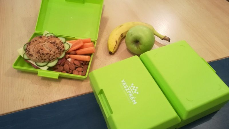 Uzsonnás dobozt kaptak a veszprémi elsősök