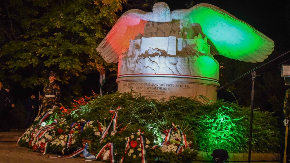 Az 1956-os forradalom és szabadságharc 62. évfordulója alkalmából rendeztek megemlékezést és koszorúzást a Megyeháza téren Brusznyai Árpád emlékműjénél kedd este.