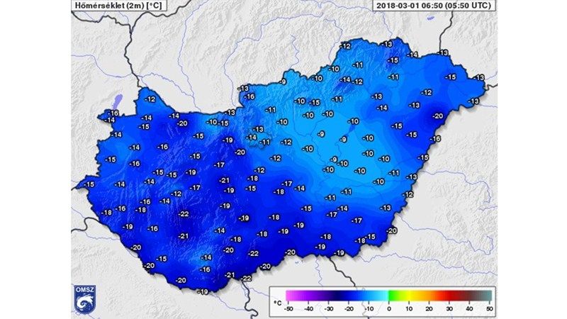 -17,6°C-os minimumot regisztrált a VMeteo.hu mérőállomása Veszprémben csütörtökre virradóra.