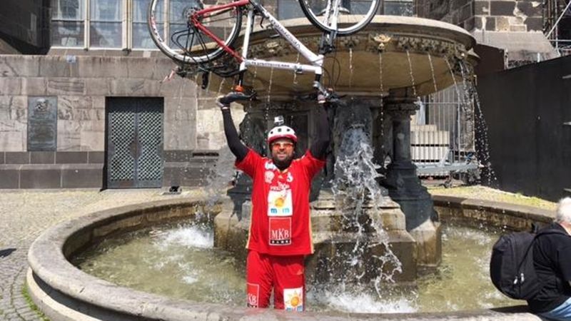 Az MVM-Veszprém lelkes szurkolója, Lőrincz Balázs Boldizsár 2,5 hét biciklizés után elért a férfi kézilabda bajnokok ligája döntőjének helyszínére.