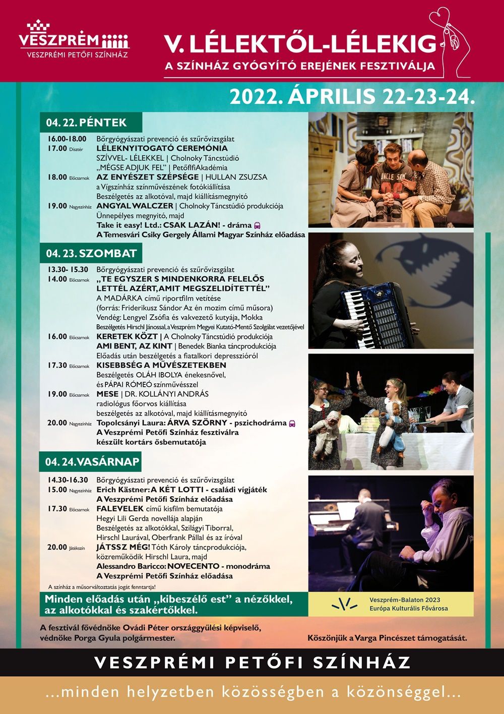 2022. április 22-24. között már ötödik alkalommal rendezik meg az országosan egyedülálló Lélektől-Lélekig Színház Gyógyító Erejének Fesztiválját.