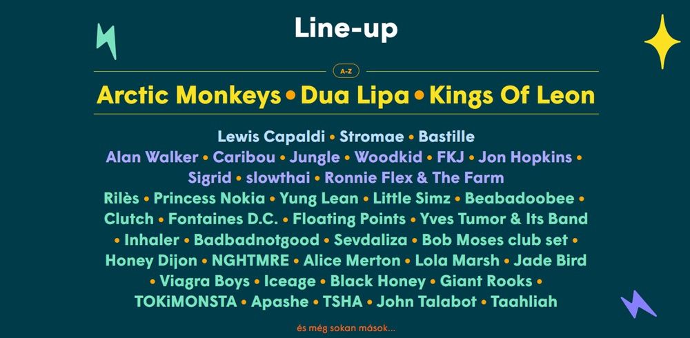 Az Arctic Monkeys, Dua Lipa, a Kings of Leon, a Bastille, Stromae és Lewis Capaldi is koncertet ad a jövő évi Sziget fesztivál nagyszínpadán.