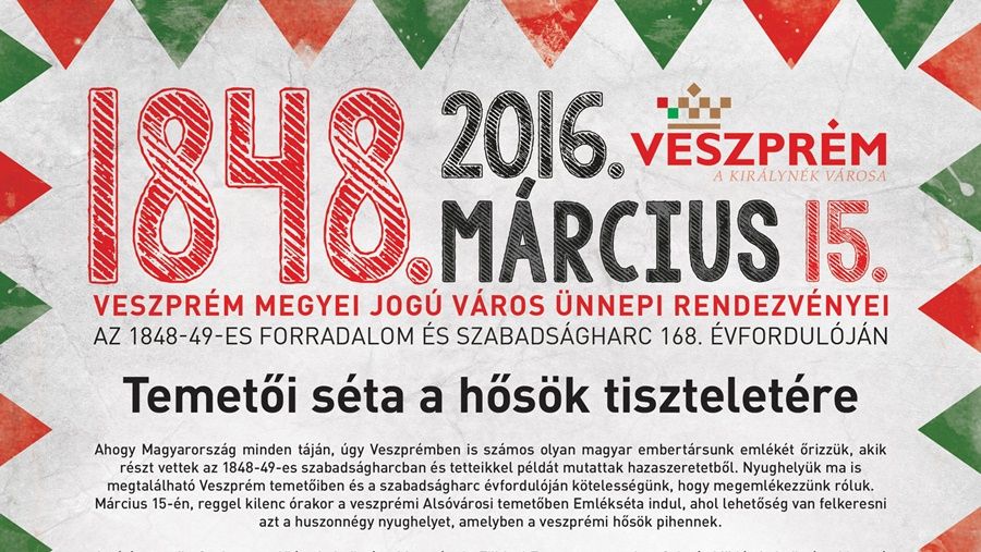 Az Alsóvárosi temetőben indul emlékséta, ahol lelhetőség van felkeresni azt a 24 nyughelyet, amelyben a veszprémi hősök pihennek.